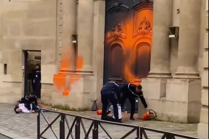avoir aspergé de peinture orange l’hôtel de Matignon en novembre 2023, dans le cadre